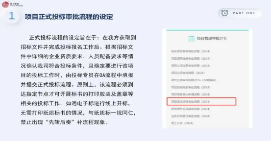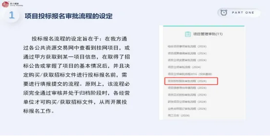 日前,OA流程线上培训交流会(投标及合同流程)在总部一层会议室成功举办(各分公司采取腾讯会议线上参会形式),参会人数30多人,包括各经营单位领导及负责投标、业务合同相关工作的人员。开展本次培训会旨在对今年优化的三个流程进行详解,使大家在工作中更好的使用掌握OA及DSS系统中的相关流程及工具。另通过汇总本年度日常审查流程中发现的问题,进行问题归类、分析并给予相应解决办法。参会人员积极讨论,提出若干问题及工作建议,现场气氛活跃烈,互动频繁,取得了本次培训会预期的效果。同时,大家会上提出的建议综合办也将积极采纳,为后续的项目管理工作提供了更好的帮助。综合办时刻秉承“学习、交流、成长”的理念,定期举办有助于一线实操工作者的培训交流活动,为同事们提供更多学习和提升的机会。最后,综合办也鼓励同事们积极参与、主动分享,共同营造一个学习型、创新型的良好氛围。(以下为培训会内容回顾)